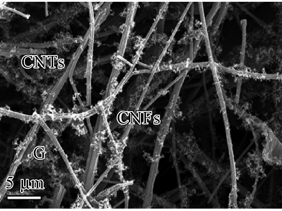 SEM image of porous CNTs/G-CNFs composite nanofibers"