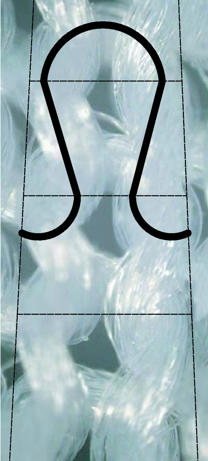 Key words: reducing diameter tubular weft knitted fabric, geometric modeling, trapezoidal loop model, linear division, loop length
