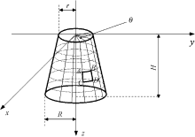 Round table model of tubular weft knitted fabric in cylindrical coordinate system"