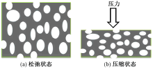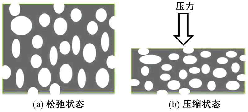 Structural model of PANI/PUF under relaxed (a) and compressed (b) state"