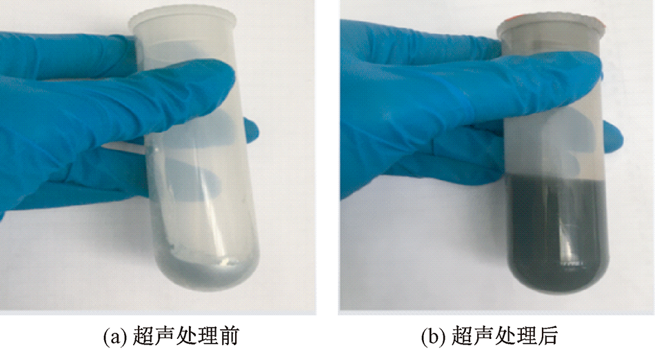 Physical figures of GaSn liquid alloy appearance changes before(a)and after(b)ultrasonic treatment"