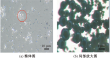 Optical microscope figure of liquid GaSn particle dispersion. (a)Overall picture;(b)Enlarged picture"