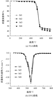 TGA (a) and DTG (b) curves of PTFE/PPS/ANF needle-punched composite felt with different ANFs mass fractions"