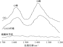 Raman spectra of GO, thioether calixarene and CrGO fibers"