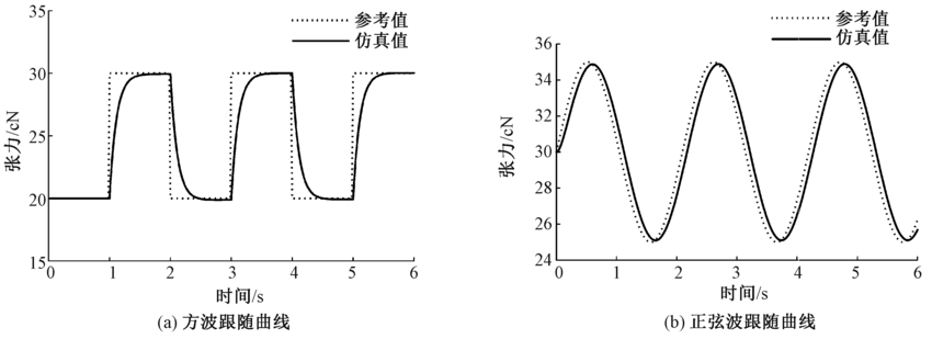 Different input signals follow simulation curve. (a) Square wave following curve; (b) Sine wave following curve"