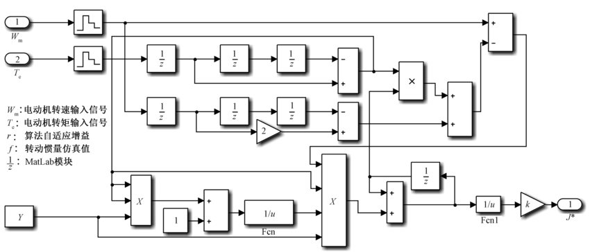 Block diagram of simulation of moment of inertia identification based on Landau's discrete-time recursive algorithm"