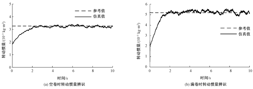 Identification result of moment of inertia of winding system. (a) Identification inertia of empty volume; (b) Identification inertia of full volumes"