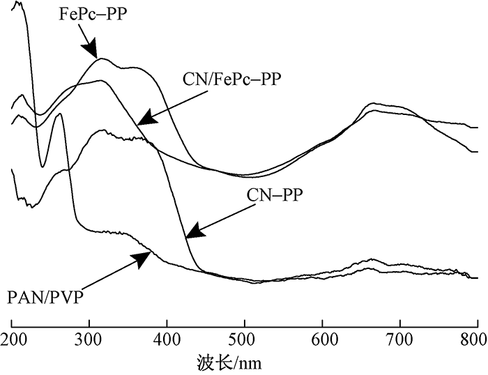 UV-Vis diffuse reflectance absorption spectra of fiber membrane samples"