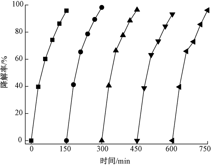 Recyclability of CN/FePc-PP/PS for RhB degradation under visible light irradiation"
