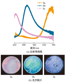 Spectral reflections(a) of films composed of Sa, Sb, Sc and photos(b) of PC films"