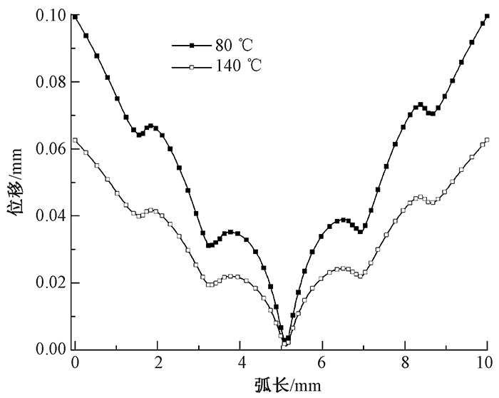 Cloud diagram of deformation(a) and temperature (b) at 140 ℃"