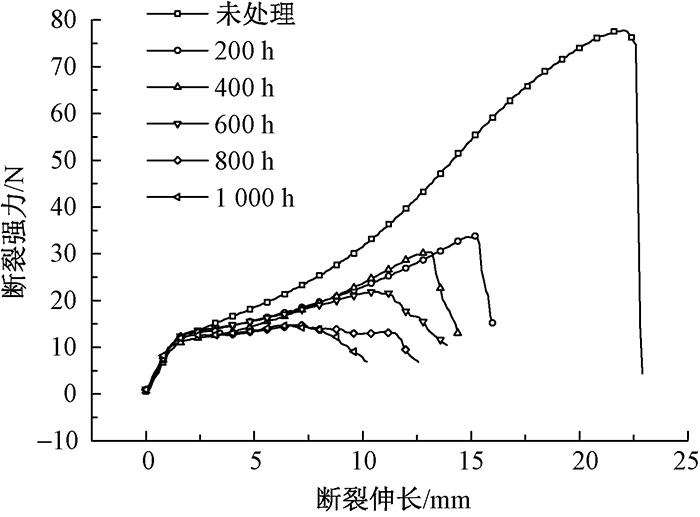 Stress-strain curve of polyester yarn before and after aging"