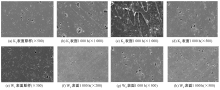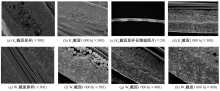 Surface SEM images of K1 and W1 and samples after 1 000 h photo-oxygen aging treatment.(a) K1 original surface(×500);(b) K1 surface after 1 000 h(×1 000);(c) K2 surface after 1 000 h(×1 000);(d) K3 surface after 1 000 h (×500);(e) W1 original surface(×300);(f) W1 surface after 1 000 h(×200);(g) W2 surface after 1 000 h(×500);(h) W3 surface after 1 000 h(×500)"