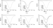 FT-IR spectra of carbonyl peak segment of 6 samples after photo-oxygen aging 1 000 h"