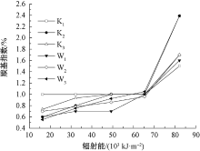Curve of carbonyl index and irradiation energy"