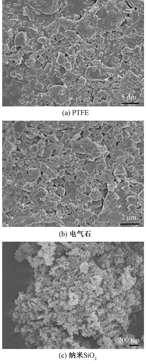 SEM images of three electrets. (a) PTFE; (b)Tourmaline; (c) Nano-SiO2"