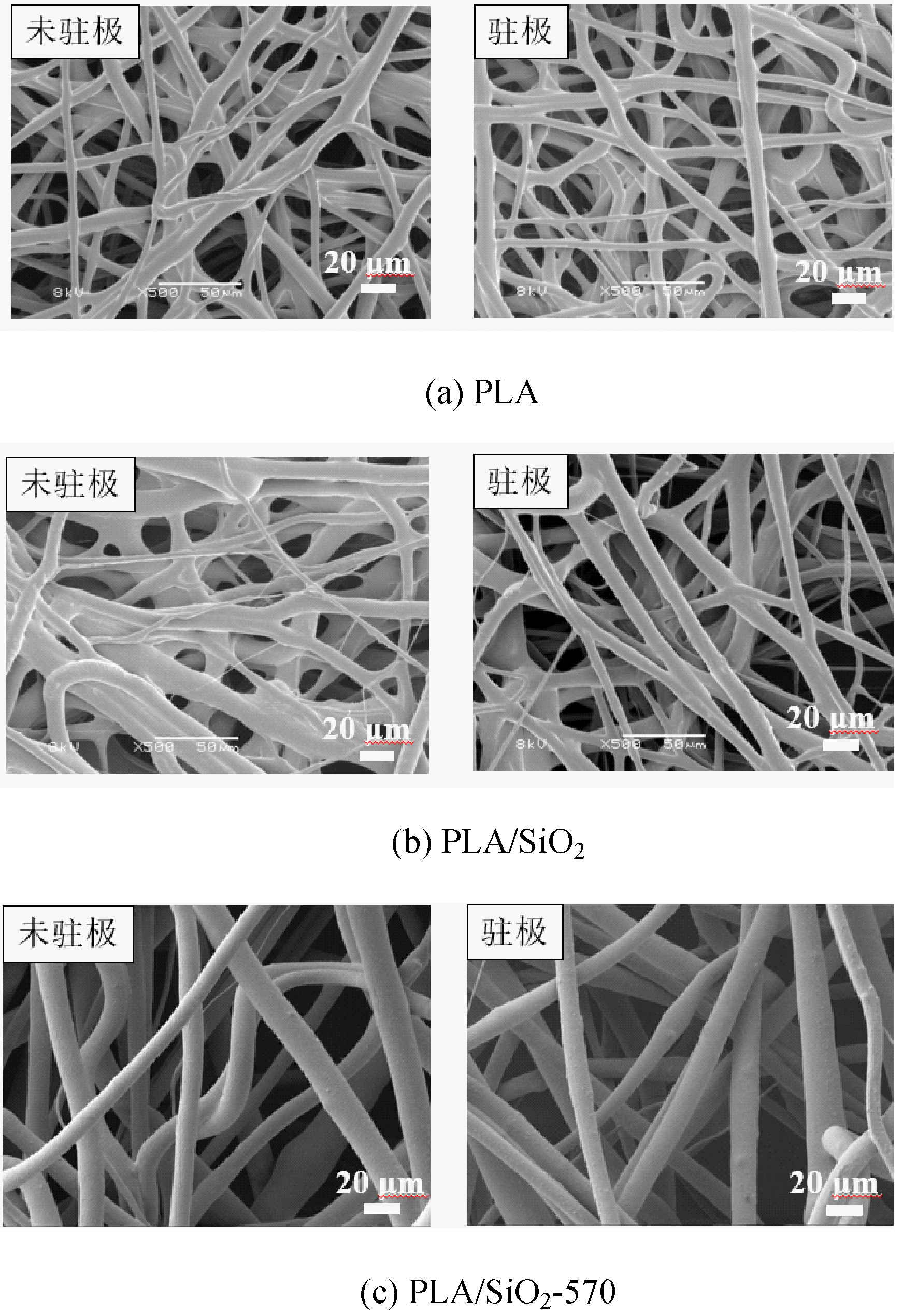 Method Different types of electrets and polylactic acid(PLA) were selected to prepare PLA/electret composites by melt blending and hot pressing, in order to obtain the best electret SiO2 for PLA. Next, the SiO2 was modified by silane coupling agent KH570 to reduce its agglomeration. As the last step, PLA/SiO2 melt-blown nonwovens were prepared by melt-blown spinning and high pressure in-situ electret technology, and charge storage capacity and air filtration performance of the samples were systematically investigated.