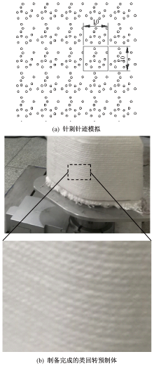 Experimental verification of quasi-rotary preform needling. (a) Needling trajectory simulation; (b) Prepared quasi-rotary preform"