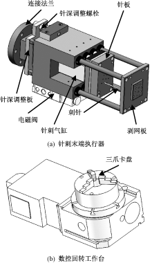 Components of needling system. (a) Needling end-effector; (b) Numerical control rotary table"
