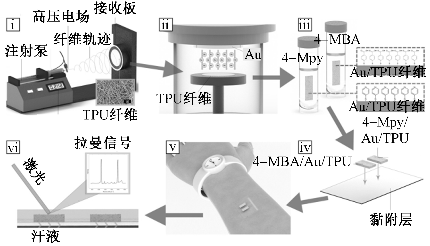 CHUNG M, SKINNER W H, ROBERT C, et al. Fabrication of a wearable flexible sweat ph sensor based on SERS-active Au/TPU electrospun nanofibers[J]. ACS Appl Mater Interfaces, 2021, 13(43): 51504-51518.