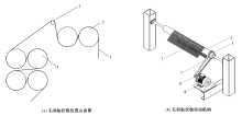 Structure of hairiness attaching device. (a) Location of hairiness attaching roller; (b) Hairiness attaching roller drive"
