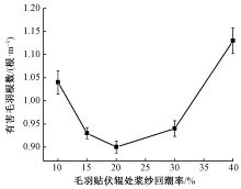 Method A laboratory scale XSY617-700 sizing machine was used for research. The sizing guide roller between the pre-drying drum and the combined drying drum was transformed into an actively rotating hairiness attaching roller to build a hairiness attaching device. According to the rule that the adhesion force of the size liquid carried by the yarn changes with the drying process, the effect of scraping action on the surface of the yarn by the hairiness attaching roller was studied. The values for two system parameters, the liquid content of the yarn when it is scraped by the roller and the friction length applied by the roller were optimized to achieve the beset hairiness reduction effect.
