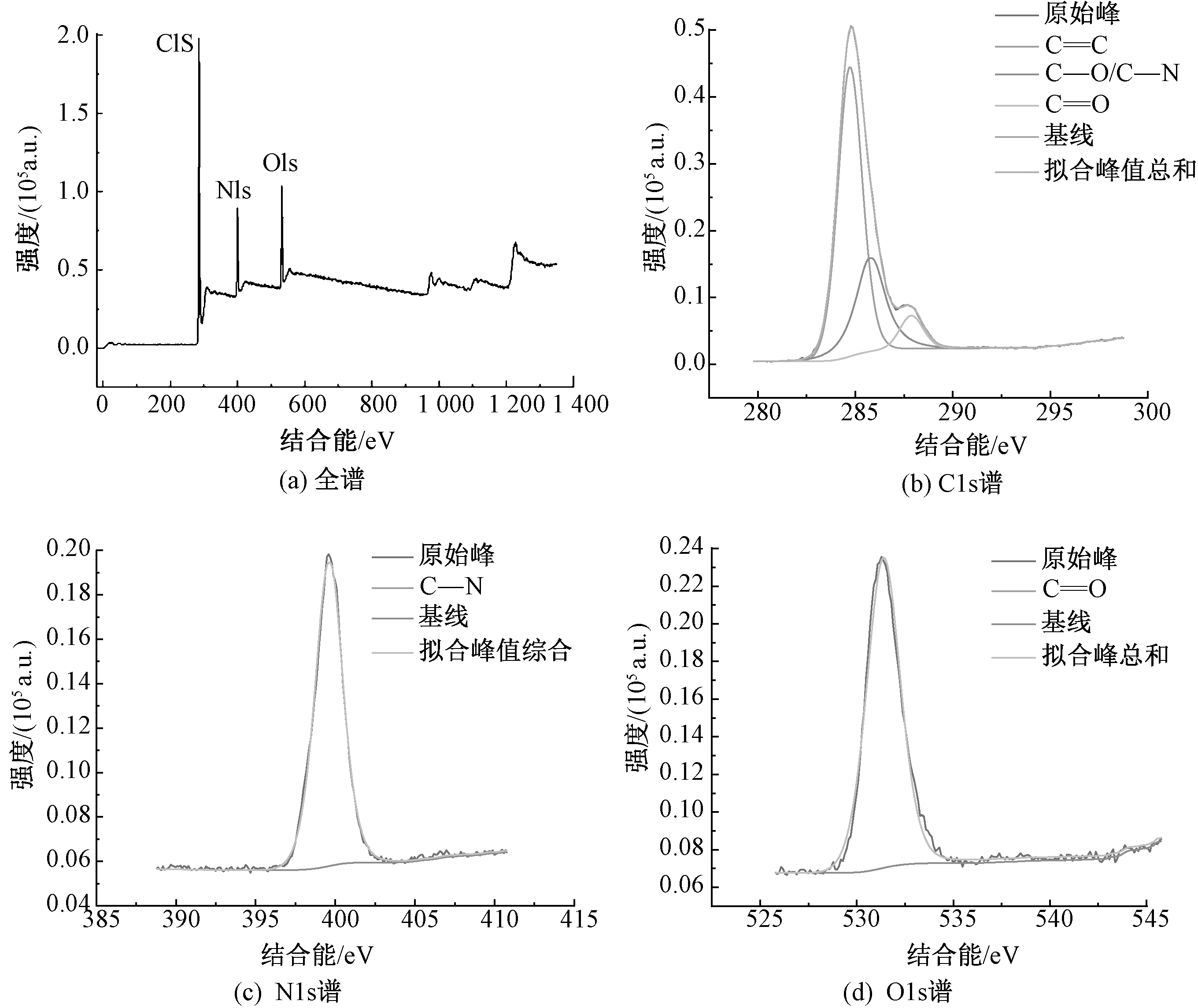 Structural characterization results of NCDs. (a) XPS survey spectrum; (b) C1s spectrum; (c) N1s spectrum; (d) O1s spectrum"