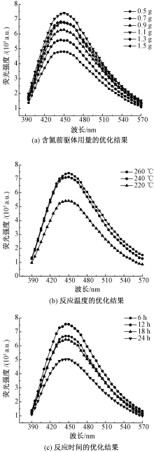 Optimization results of nitrogen-containing precursors (a), reaction temperature (b) and reaction time (c)"