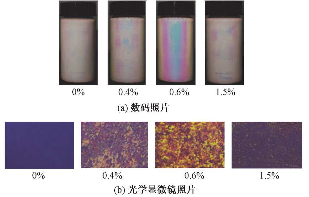 Digital photos (a) and optical microscope photos (b) of LPCs prepared with different mass contents of dispersants"