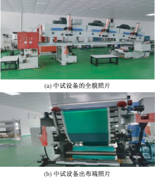 Digital photos of whole pilot equipment. (a) Photo of pilot equipment; (b) Photo of fabric outlet of pilot equipment"