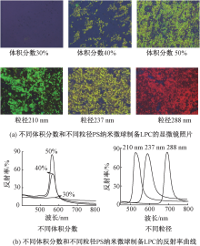Microscope images (a) and reflectance curves (b) of LPCs prepared from PS nanospheres with different volume fractions and diameters"