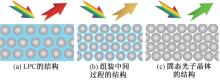 Schematic diagram of transformation process from LPC to solid photonic crystals. (a) Structure of LPCs; (b) Structure during self-assembly; (c) Structure of solid photonic crystals"