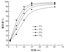 Decolorization rate of colored wastewater treated with different mass fraction of treatment agent"