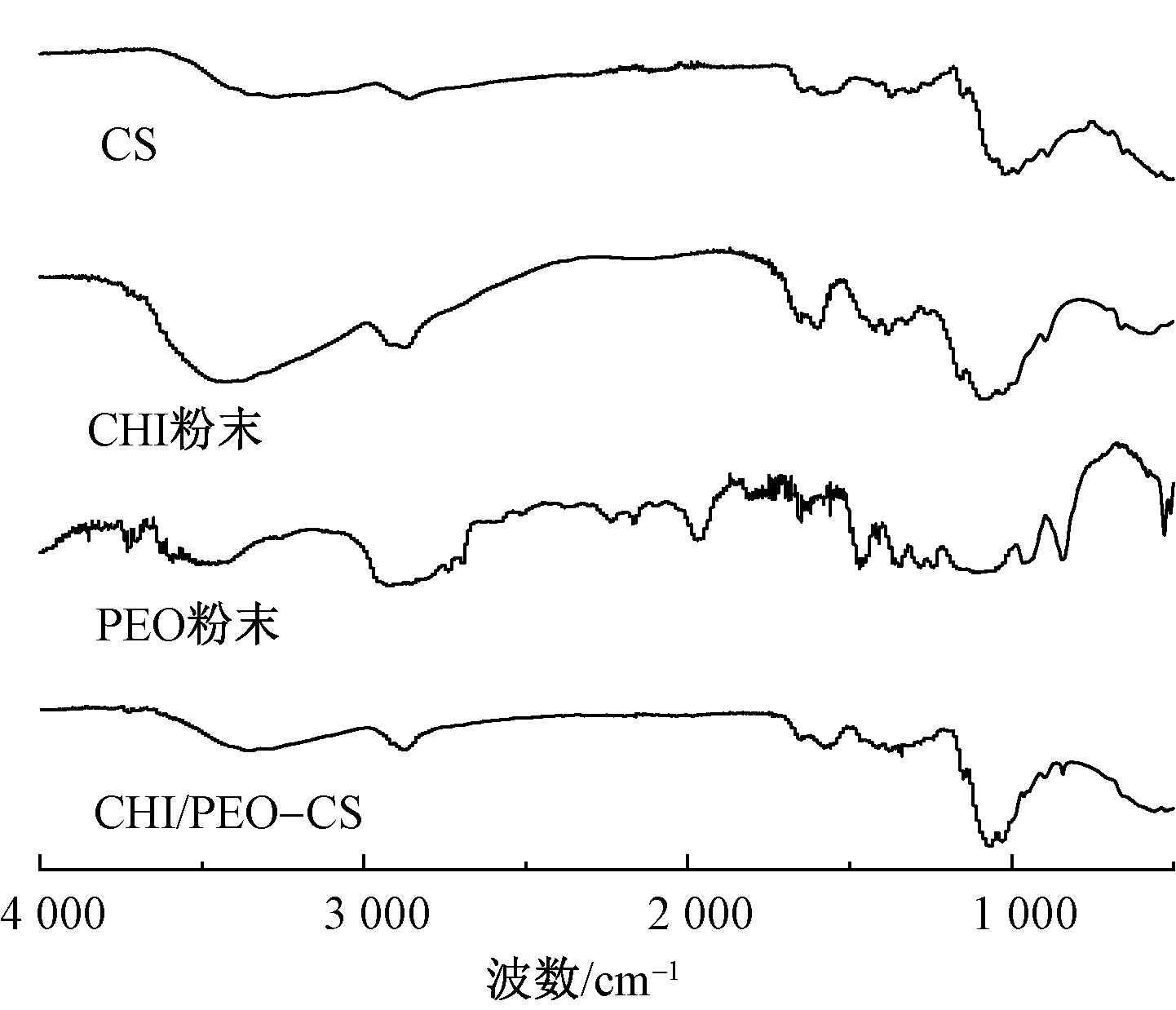 Infrared spectra of CS, CHI, PEO and CHI/PEO-CS"