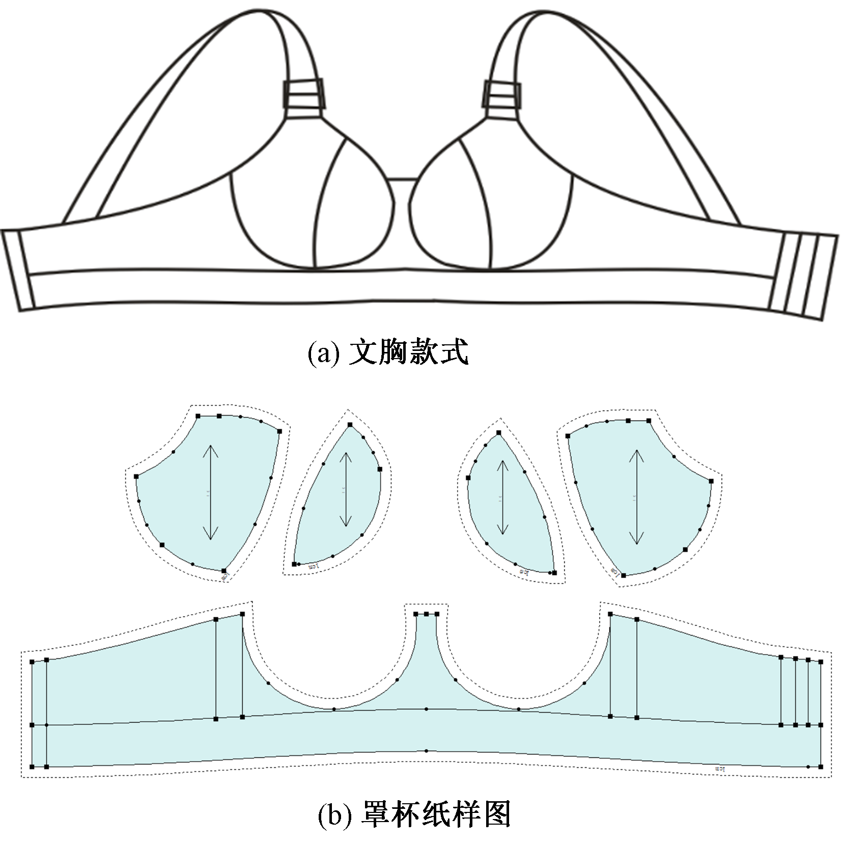 Experimental bra. (a) Style; (b) Cup pattern"