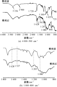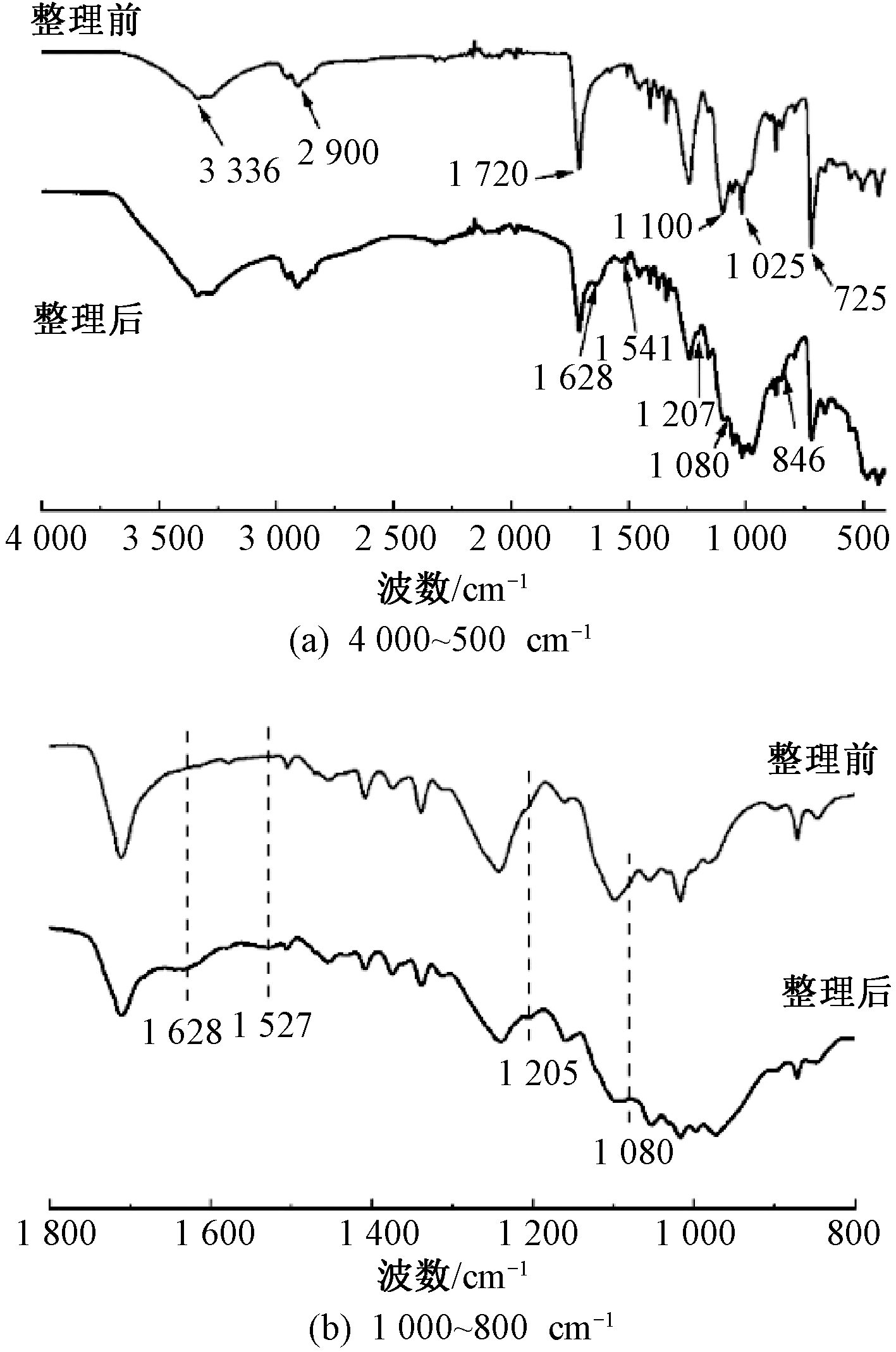 ATR-IR spectra of polyester/cotton blended fabric before and after finishing"