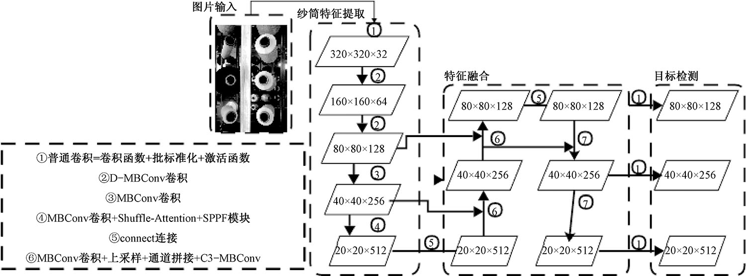 Key words: improved Yolov5 model, perspective transformation, mean shift, gradient descent method, spindle residual yarn quantity, circular lenitting machine