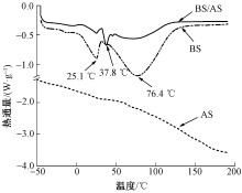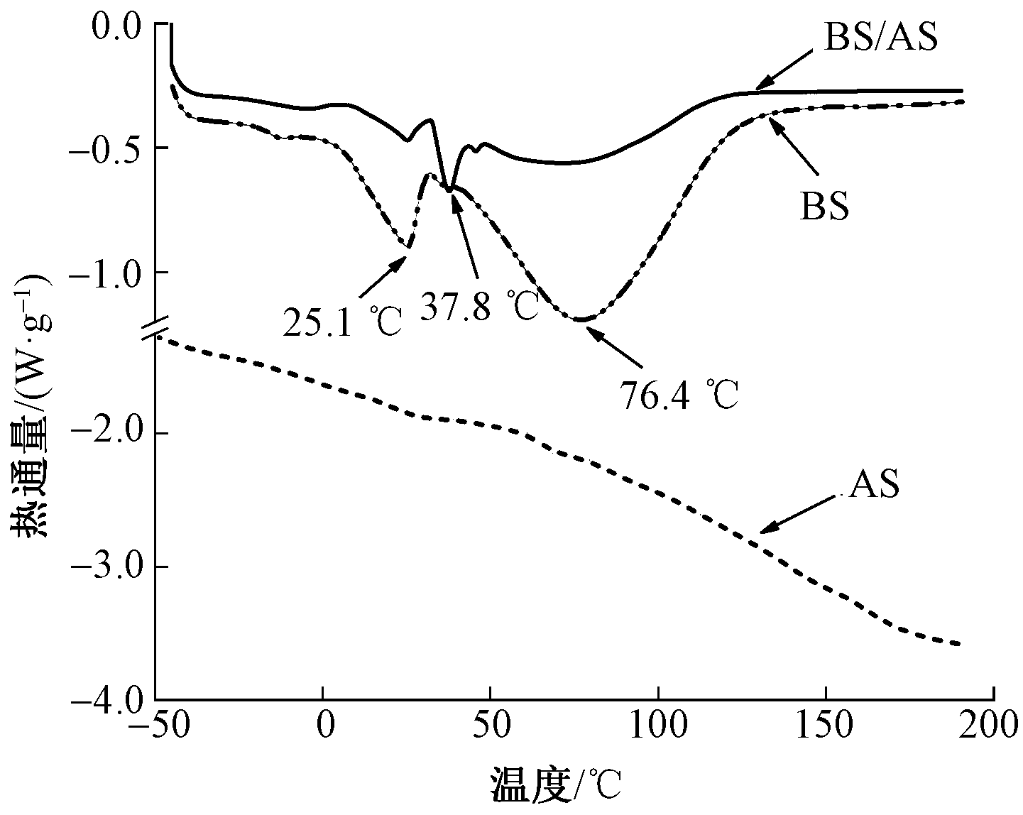 DSC curves of AS, BS and BS/AS at same heating rate"