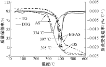 TG/DTG curves of AS, BS, and BS/AS at same heating rate"