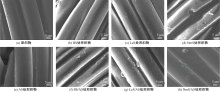 SEM images of nylon/spandex fabric before and after finishing (×2 000). (a) Original fabric; (b) Fabric treated with BS; (c) Fabric treated with LcS; (d) Fabric treated with NmS; (e) Fabric treated with AS; (f) Fabric treated with BS/AS; (g) Fabric treated with LcS/AS; (h) Fabric treated with NmS/AS"