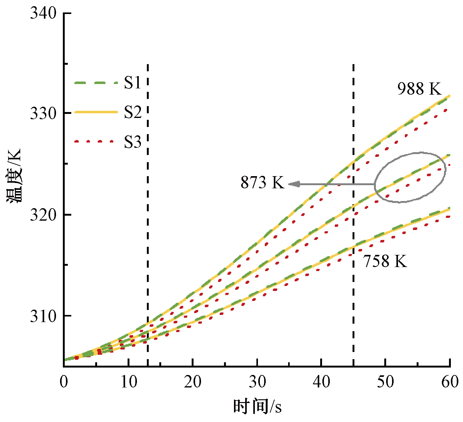 Temperature distributions of model S2 under different heat exposure peak temperatures at 60 s"