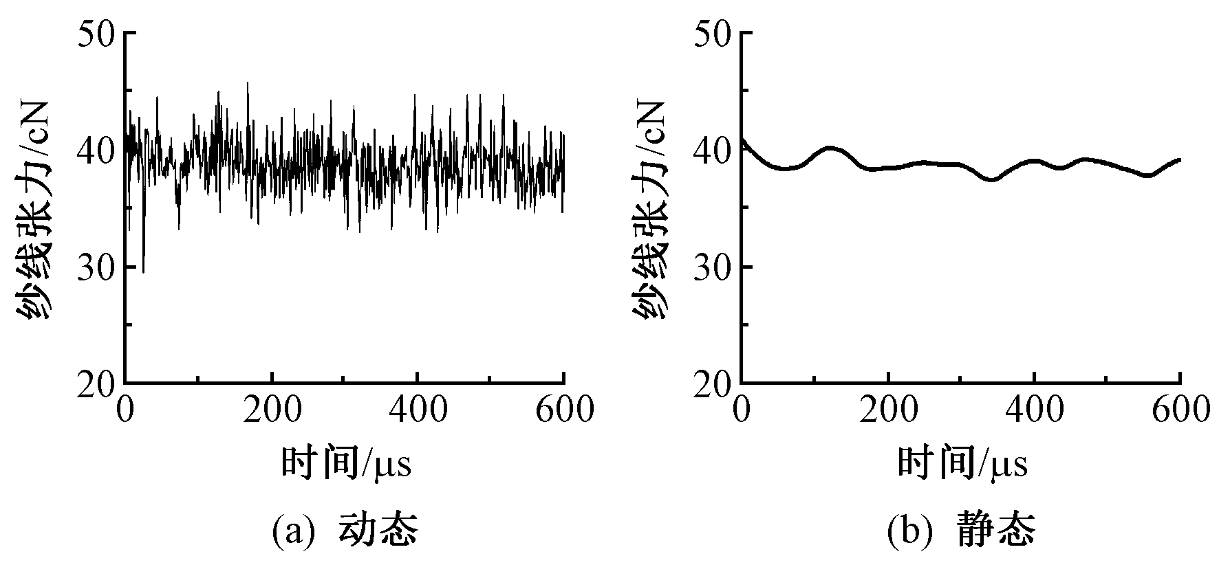 38 cN tension signal waveform. (a) Dynamic yarn; (b) Static yarn"