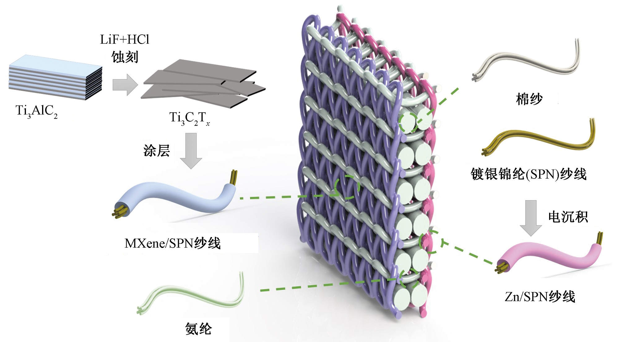 Schematic diagram of MXene/Zn three-dimensional integrated knitted supercapacitor"
