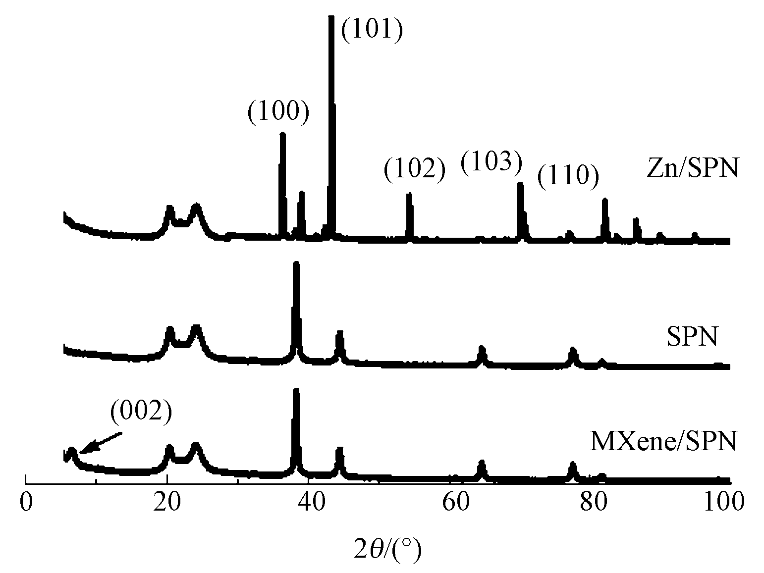 XRD images of MXene/SPN and Zn/SPN yarns"