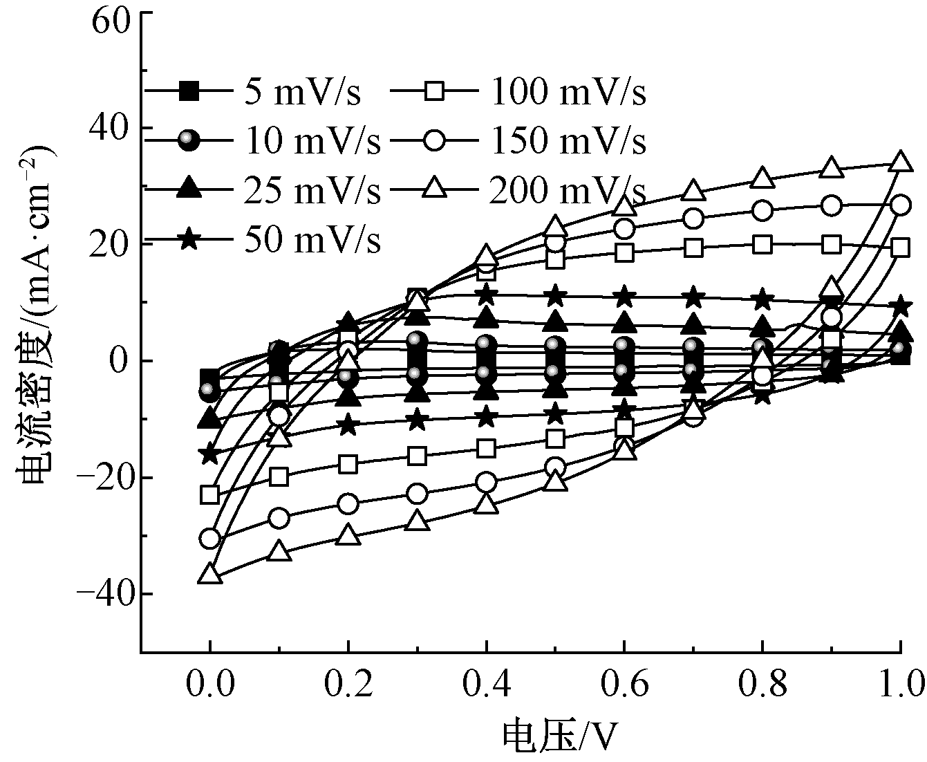 Conclusion The three-dimensional integrated knitted structure was prepared to effectively improve the energy storage performance of the supercapacitors, and its inherent porous structure effectively attracted the active material to achieve high ion diffusion speed and charge-discharge rate. The microstructure and chemical composition of MXene were discussed and analyzed. Electrochemical testing revealed that the area capacitance was 345.56 mF/cm2 at a current density of 1 mA/cm2, 93.51% capacitance retention and 92.43% coulombic efficiency after 10 000 charge-discharge cycles, and a power density of 10 mW/cm2 at an energy density of 25.05 μW·h/cm2. The three-dimensional knitted supercapacitor has good durability. It has high voltage retention of 94.1% after 10 h in air. The promising three-dimensional integrated knitted structure for flexible supercapacitors provides a reliable and efficient power supply for wearable electronic devices.