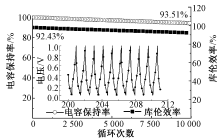 Capacitance retention and coulombic efficiency curves of ZSC"