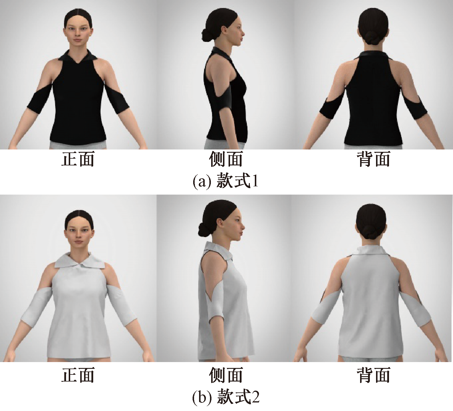Warp knitting fully-formed T-shirt simulation. (a)Style 1; (b)Style 2"