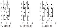 Motion diagram of cushion yarn. (a) Thin pattern; (b) Mesh pattern; (c) Thick pattern"