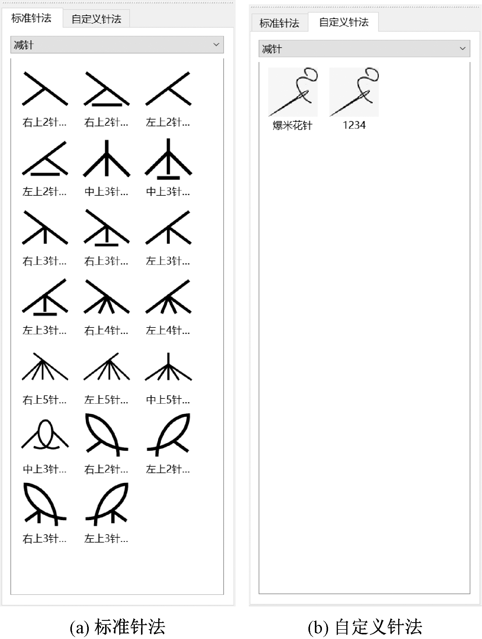 Views of standard stitch (a) and custom stitch (b)"