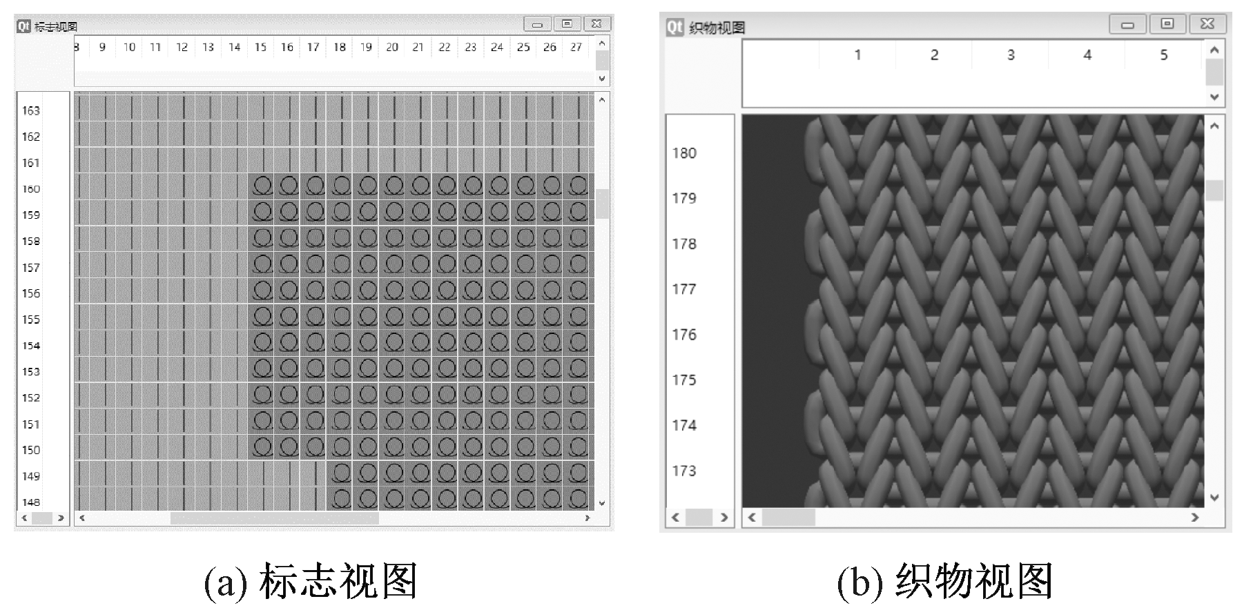 Views of stitch symbol (a) and fabric (b)"
